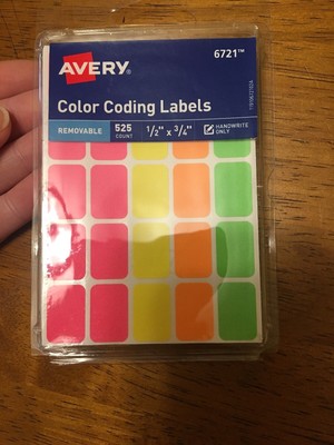 Amazon.com: Avery Round Color Coding Labels, 0.75 Inch, Assorted ... This item: Avery Round Color Coding Labels, 0.75 Inch, Assorted, Removable,Pack of 315 (6733) $2.26 ($0.01/Count) Avery Removable Color Coding Labels, Rectangular, Assorted Colors, Pack of 525 (6721) $4.78 ($0.01/Count) Avery 5472 Removable Print or Write Color Coding Labels, Round, 0.75 Inches, Pack of 1008 $5.56 ($0.01/Count) estate sale tags